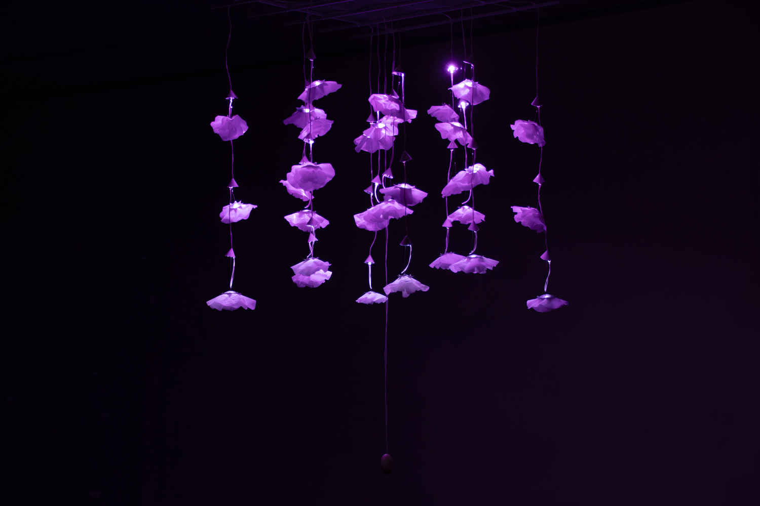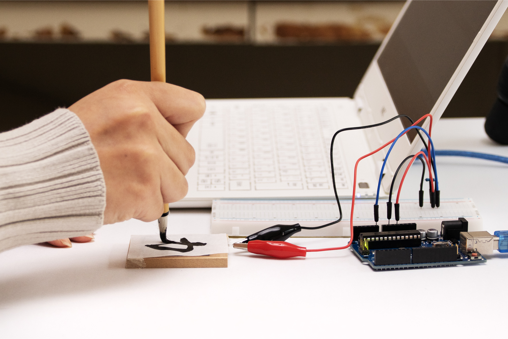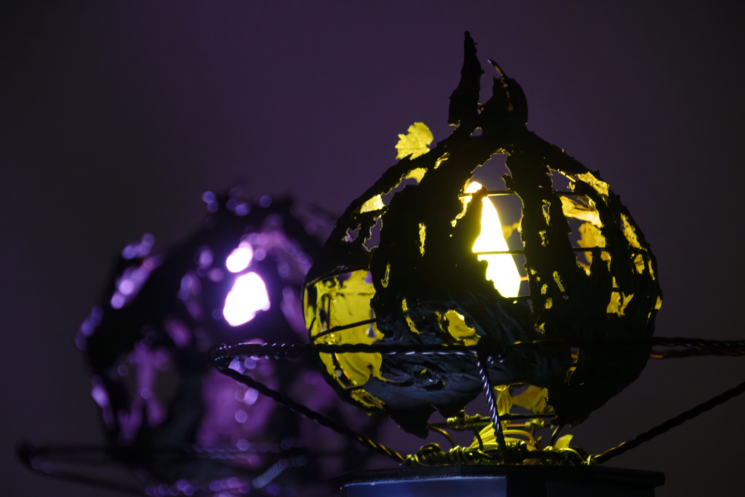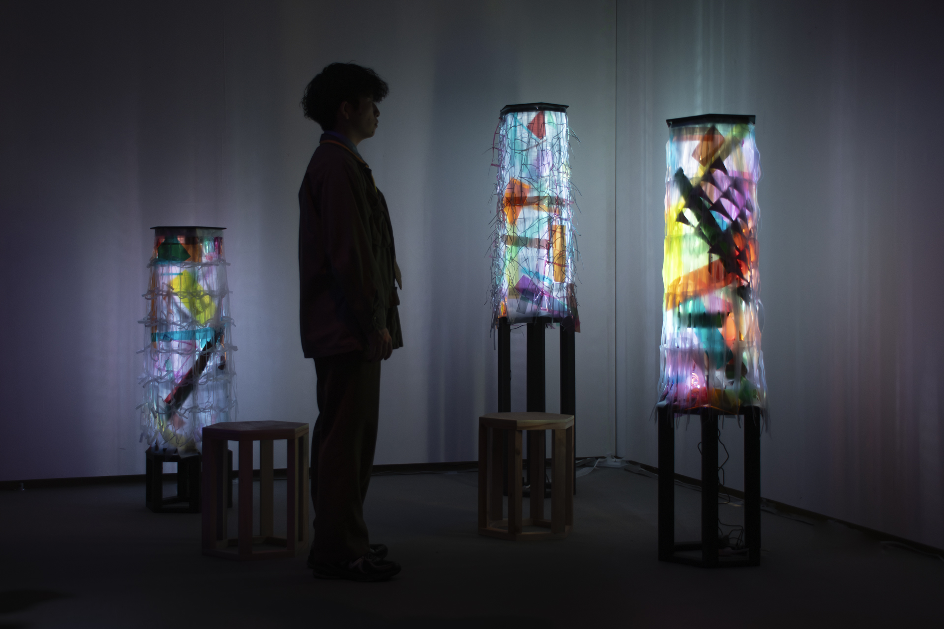 「手で作ること」を中心に、立体造形と空間表現を探求する研究室です。光や動きを取り入れたインタラクティブな表現や、鋳造、型取りと樹脂造形、木材加工、デジタルファブリケーション、写真、Processingによる映像制作など、表現方法は多岐にわたります。