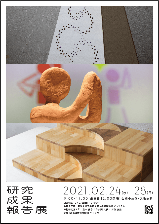 新潟大学工学部人間支援感性科学プログラム三村研究室3年生3名による研究成果報告展を開催いたしました。